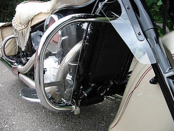 You can just make out the clear leg shields I made which fit