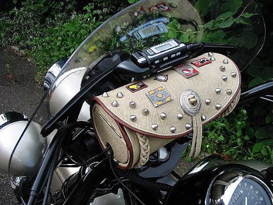 This is the 'communication center' and a must for those longer journeys.! You can see the MP3 player, and inside the tool roll is the main unit and wiring which runs the radio and ties the helmet speakers/mic/MP3 etc into the system.