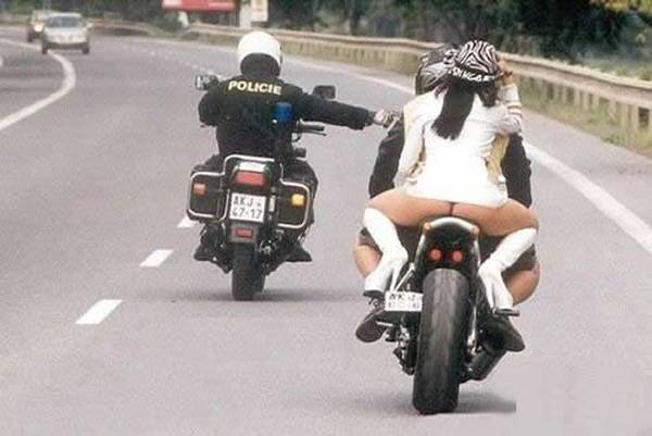 Phil's caption - "I pulled you over because she's not wearing something...a HELMET!!!!!"